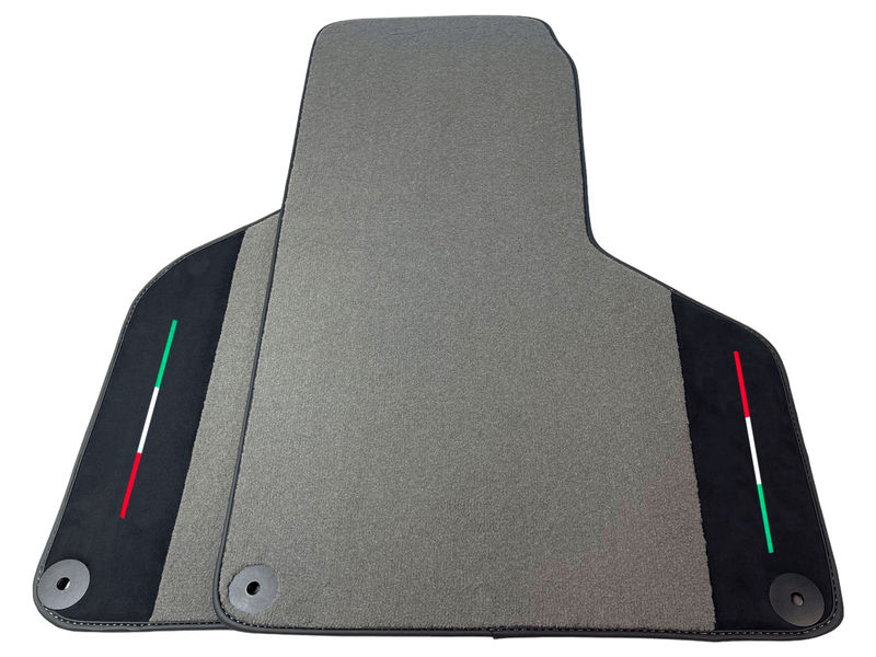 Werten Sie Ihren Lamborghini Huracan mit diesen luxuriösen grauen Fußmatten mit italienischer Flagge aus hochwertigem Alcantara-Leder auf. Verbessern Sie das Gesamtbild und die Haptik Ihres Autos mit diesem maßgeschneiderten Zubehör. Schützen Sie den Boden Ihres Autos vor Abnutzung und verleihen Sie Ihrem Innenraum gleichzeitig einen Hauch von Eleganz. Fachmännisch entworfen für eine perfekte Passform und lange Haltbarkeit.