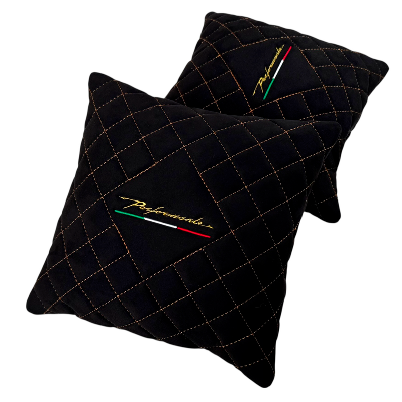Give your Huracan Performante that extra edge with a set of 2 handmade Black Alcantara pillows. Each piece is crafted by hand with precision, finished with unique stitching design that brings out both elegance and racing spirit.