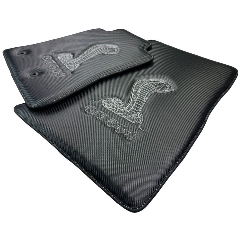 I nostri Tappetini in fibra di carbonio per Ford Mustang GT500 Shelby (2015-2021) offrono un aspetto elegante e sportivo con cuciture Cobra. Realizzati con materiale in fibra di carbonio durevole e di alta qualità per la massima protezione, questi distintivi tappetini per auto offrono anche una presa antiscivolo e protezione per l'interno del veicolo.